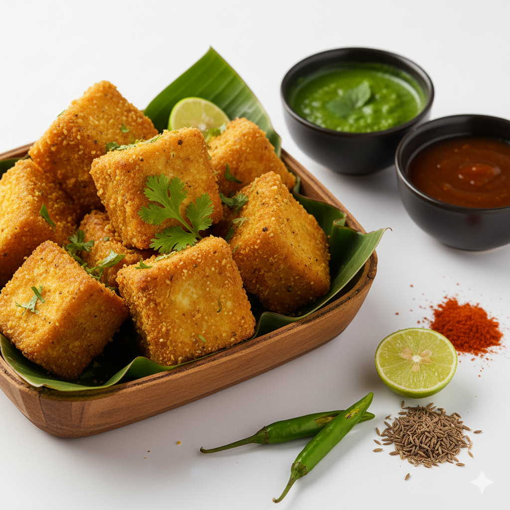 Made with fritters in spiced chickpea batter